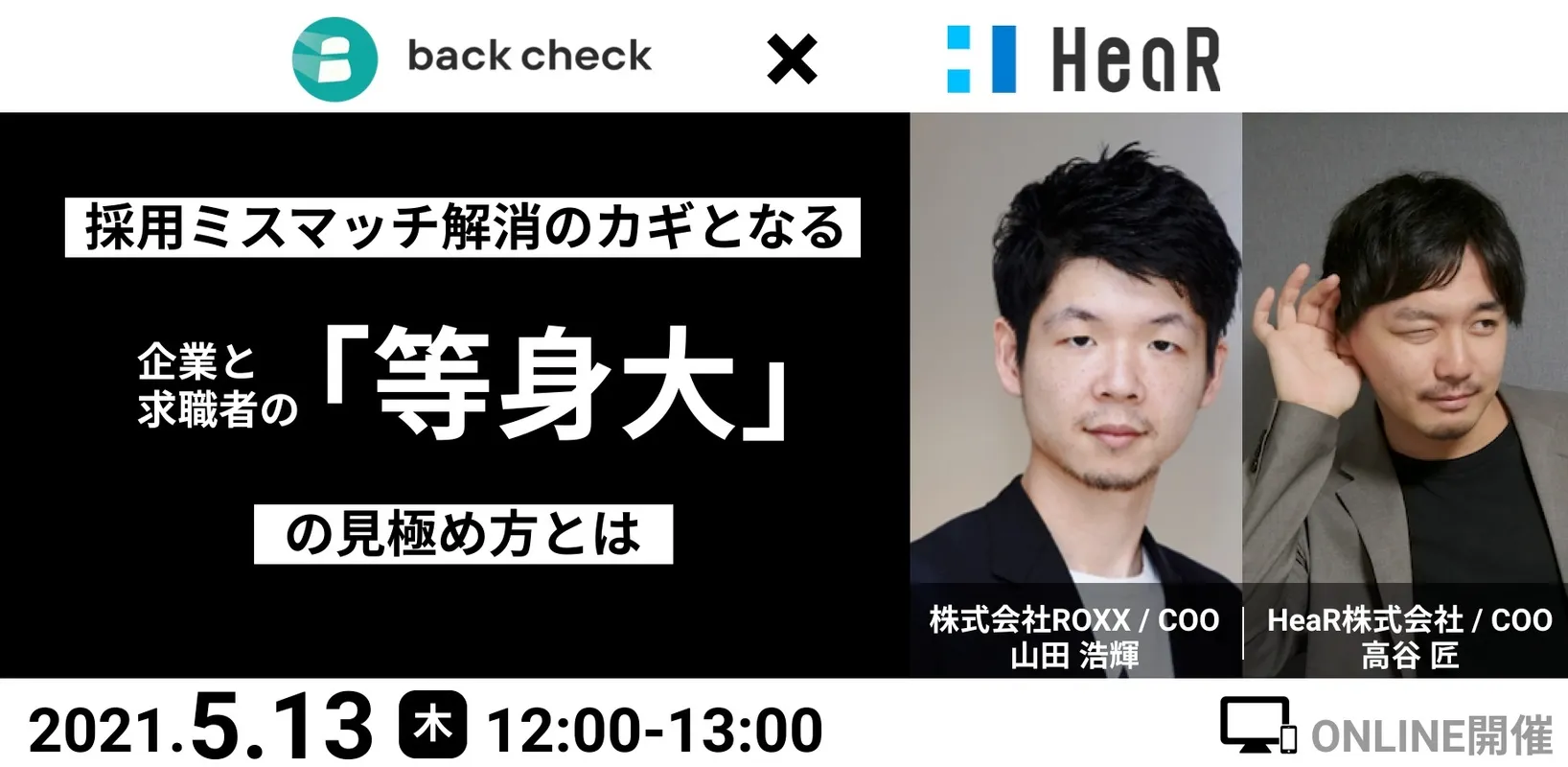 本イベントは「採用ミスマッチ解消のカギとなる企業と/求職者の「等身大」の見極め方とは」と題して、採用ミスマッチが起こる原因とその解消法について、ROXXとHeaRがそれぞれの知見や事例をもとにお話していきます。