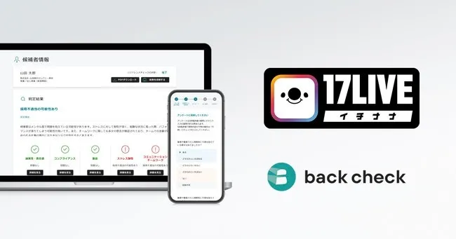 株式会社ROXX(本社:東京都港区、代表取締役:中嶋汰朗)は、日本No.1(※1)ライブ配信アプリ「17LIVE(イチナナ)」を運営する、株式会社17 Media Japan(本社:東京都港区、代表取締役:小野裕史)にて、当社が開発・運営する月額制リファレンスチェックサービス『back check』が導入されたことをお知らせいたします。